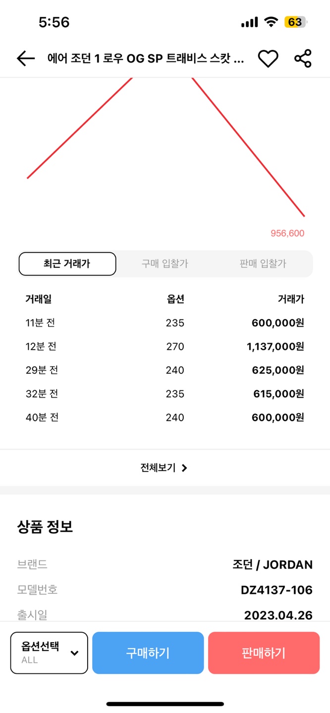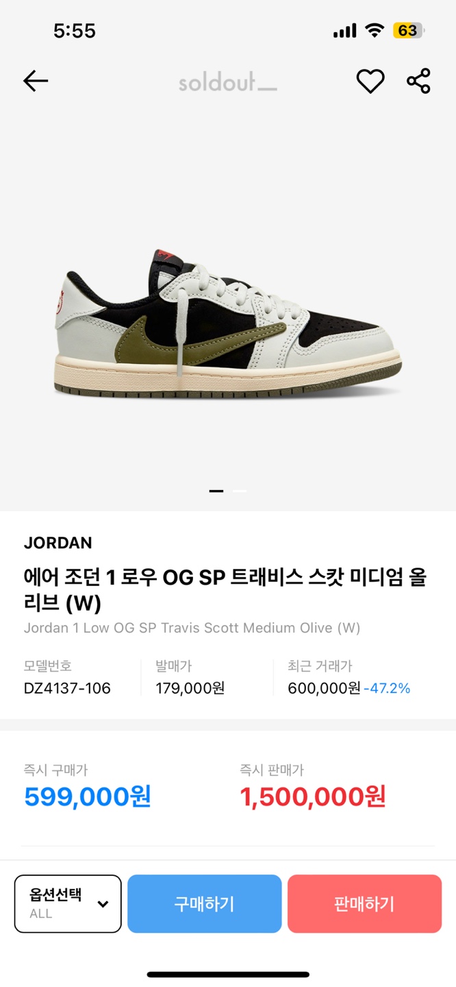 반면 크림 같은 경우 발매정보의 탭은 Header Menu에서 슬라이드를 한번해야 보인다