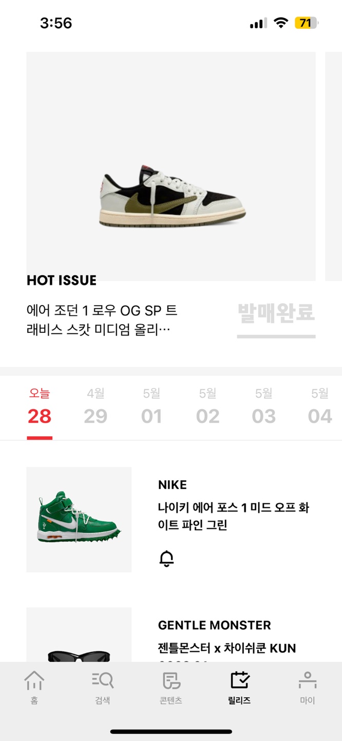 솔드아웃의 릴리즈 탭은 User의 만족도가 높은 탭이라 생각한다