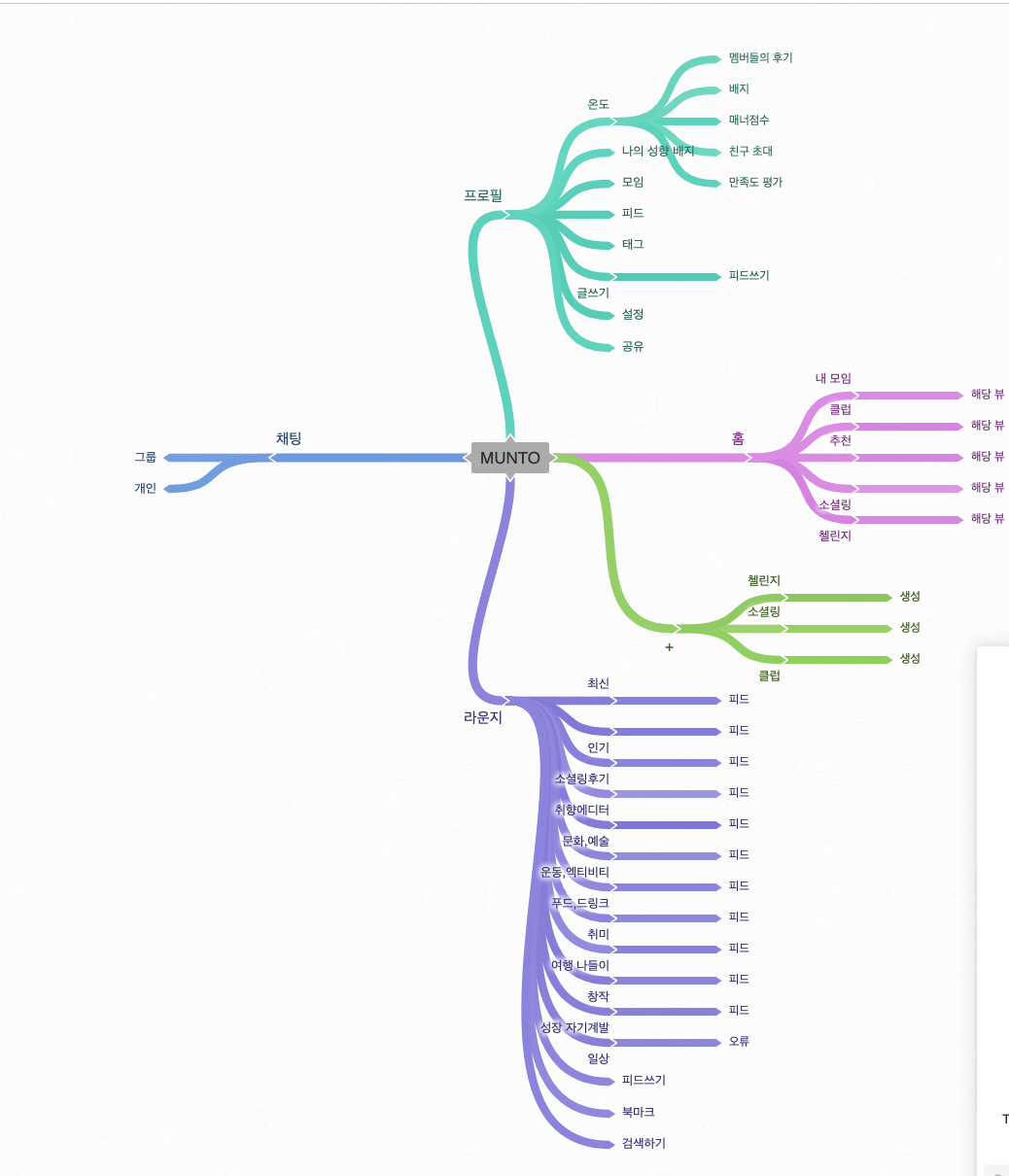 - 문토는 소셜링, 클럽, 첼린지, 라운지 기능을 통해 O2O 방식으로 앱에서 컨텍 한 후 오프라인에서 사용자들간의 연결을 목표로 한다.