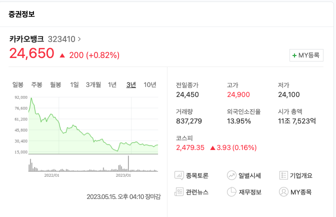 -> 불과 어제(2023. 05. 15) 카카오페이의 서비스 접속 장애가 2시간 동안 이어져 아직도 서버에 문제가 대두되고 있는 상황과 과거 1월 17일의 서버의 문제가 한번 있었던 카카오페이는 서버의 중요성이 가장 큰 '증권'에서 신뢰를 어떻게 다시 얻을 수 있을지 앞으로 고쳐 나가야 할 문제점이다.