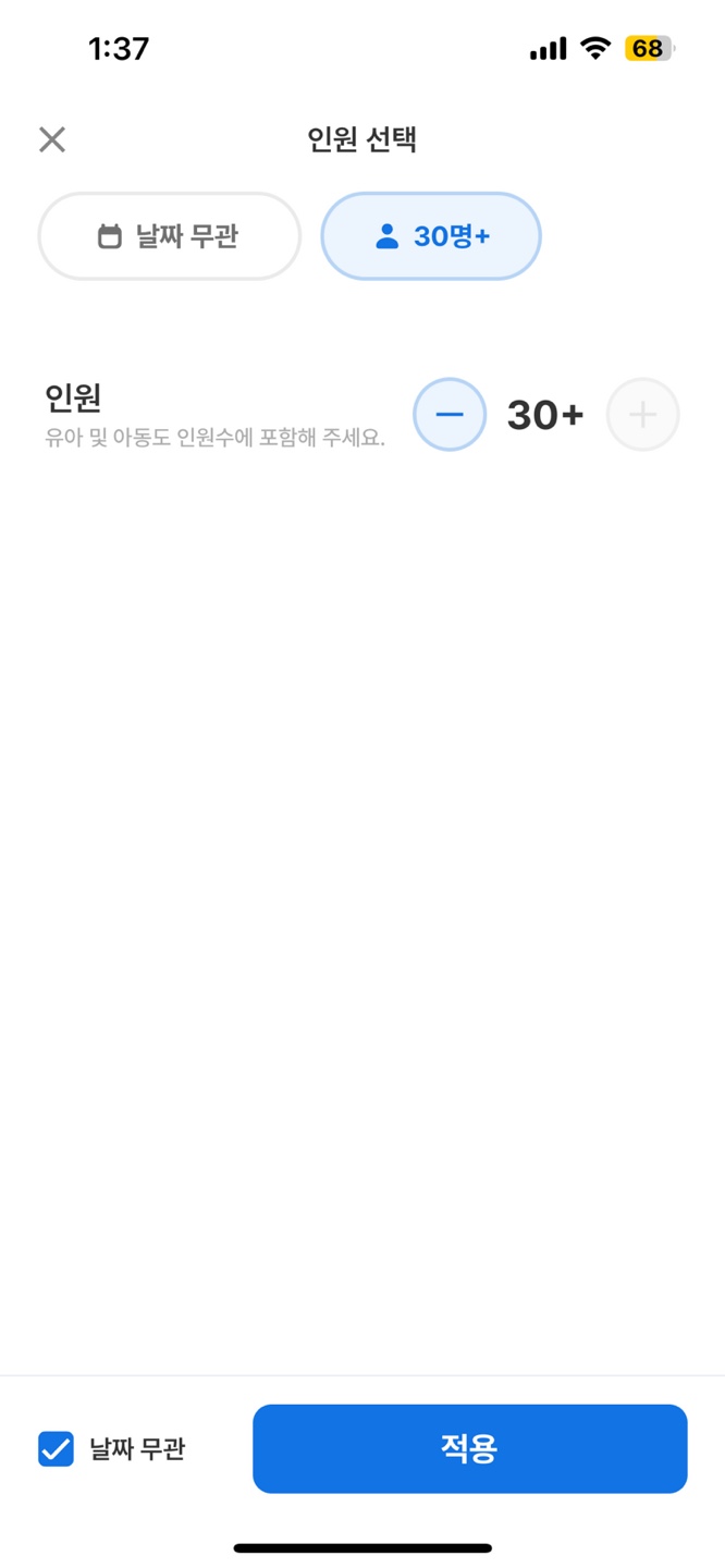 위의 화면은 0부터 30까지 인원을 올린 화면으로 + 버튼이 Block된 상태인데 인원이 50명 일 경우 Max의 수치를 몰라서 인원을 목표치까지 올리다가 30명에서 멈추는 경우가 발생 할 수 있다