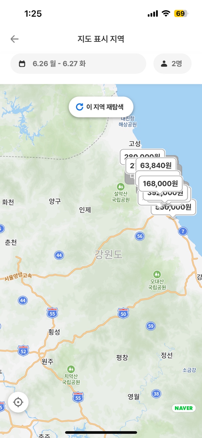 야놀자의 경우 Sorting(후기 많은 순), 지도, Filter를 모아놓고 똑같은 위계로 설정하여 한눈에 들어오는 것을 알 수 있다