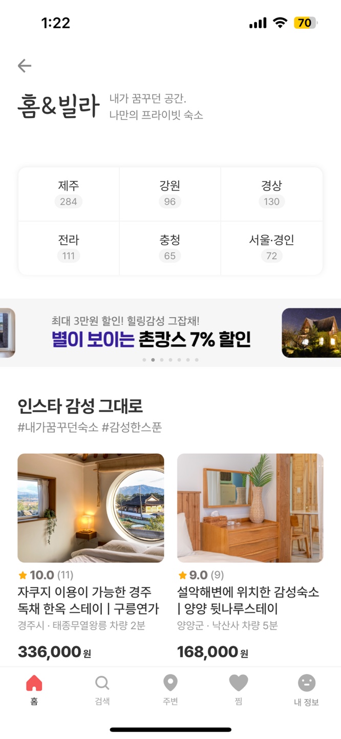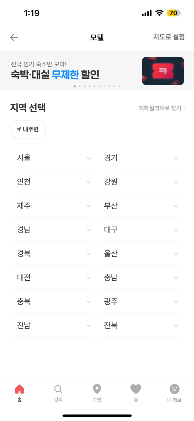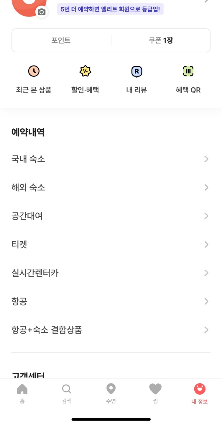 여기어때의 경우도 야놀자의 정보 제공 방식처럼 똑같은 위계를 통해 User가 한눈에 기능을 알아 볼 수 있게 해야한다