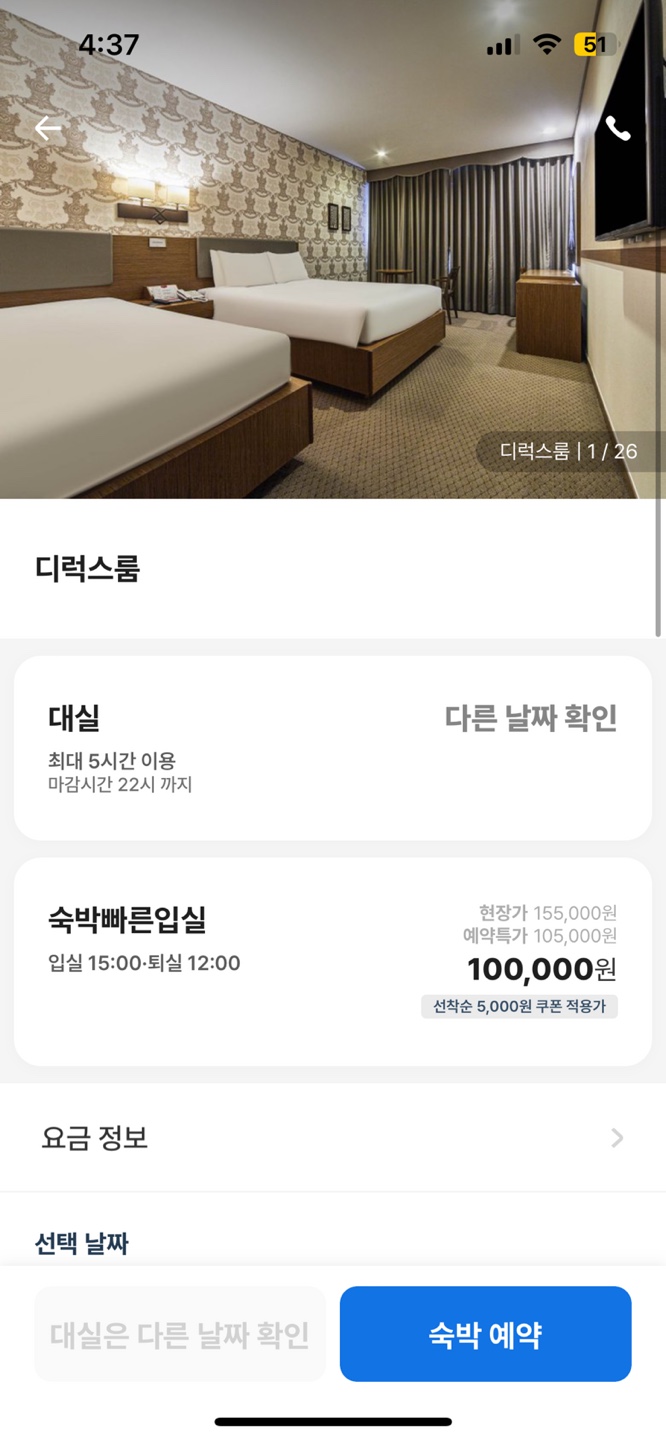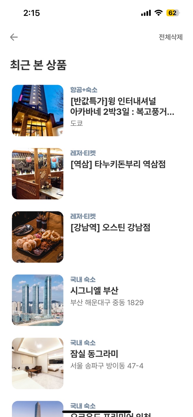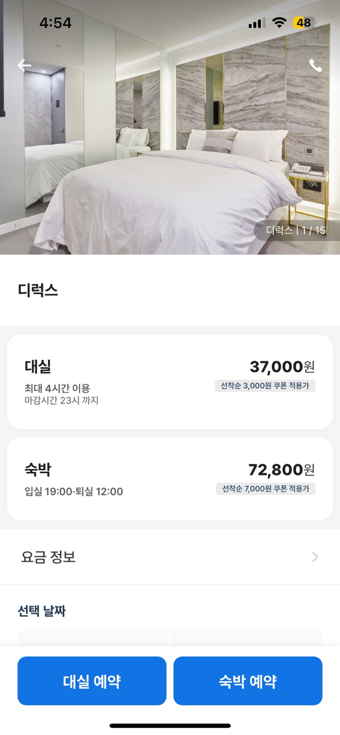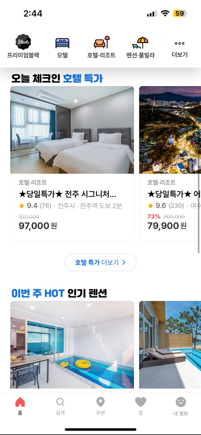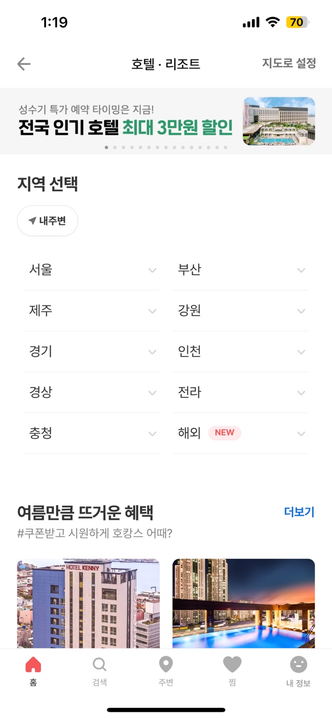모텔의 경우 혜택 관련 추천이 없는 반면 호텔, 리조트의 경우는 있으며 다른 버튼을 눌렀을 때 나오는 View에는 혜택 관련 추천 서비스가 제공된다