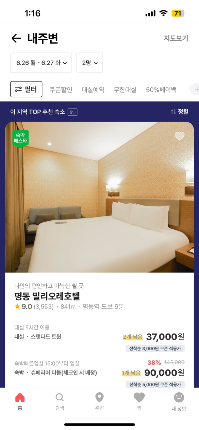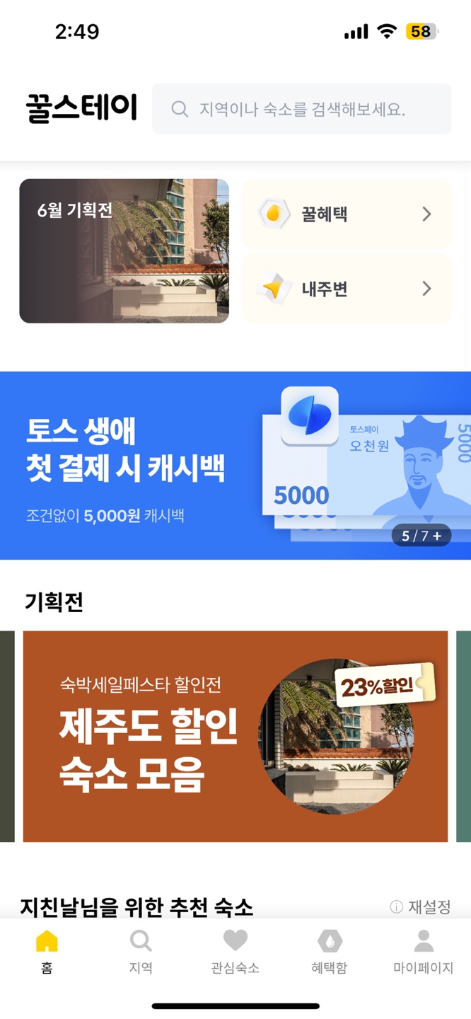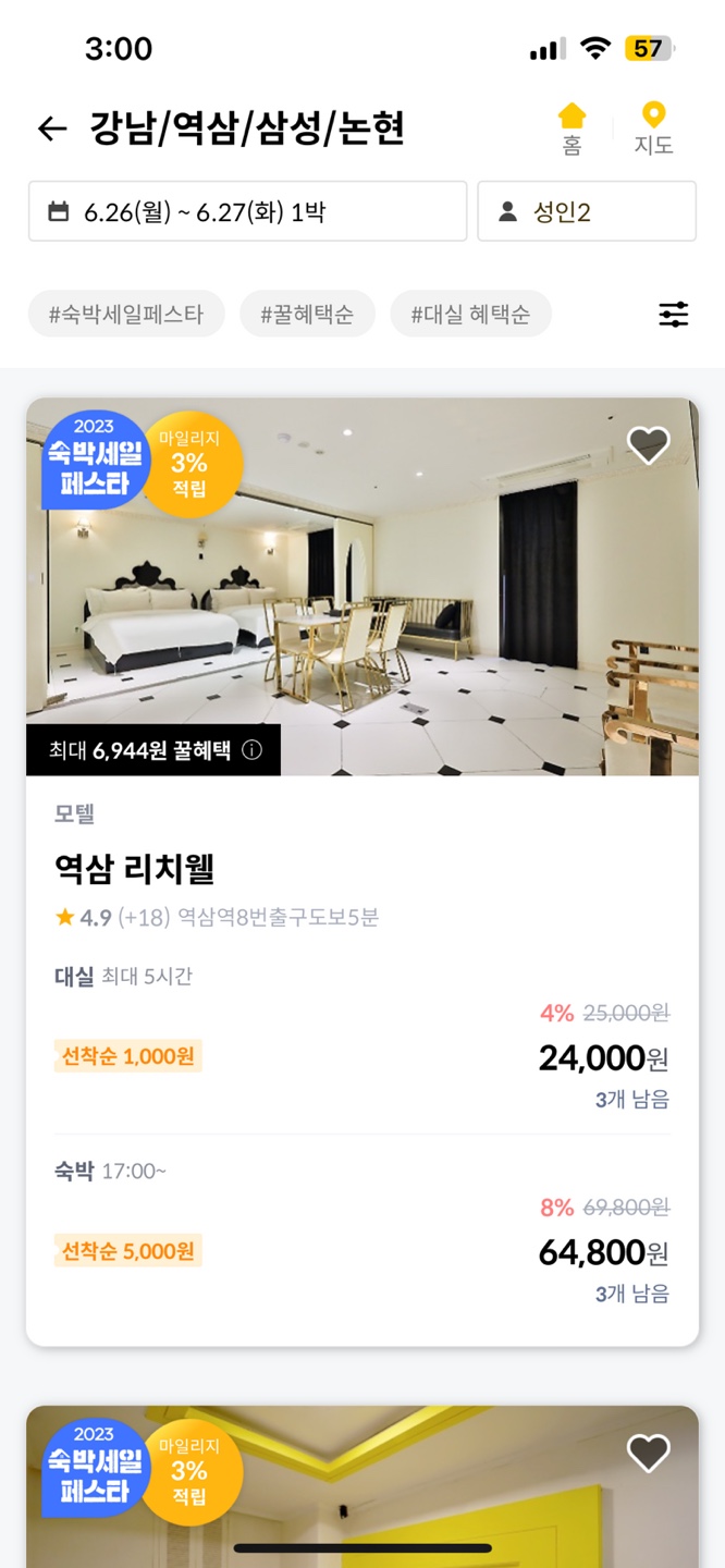 사용자의 서비스 접근이 더 쉽게 모텔 검색화면에서도 혜택 관련 추천 서비스가 있으면 한다