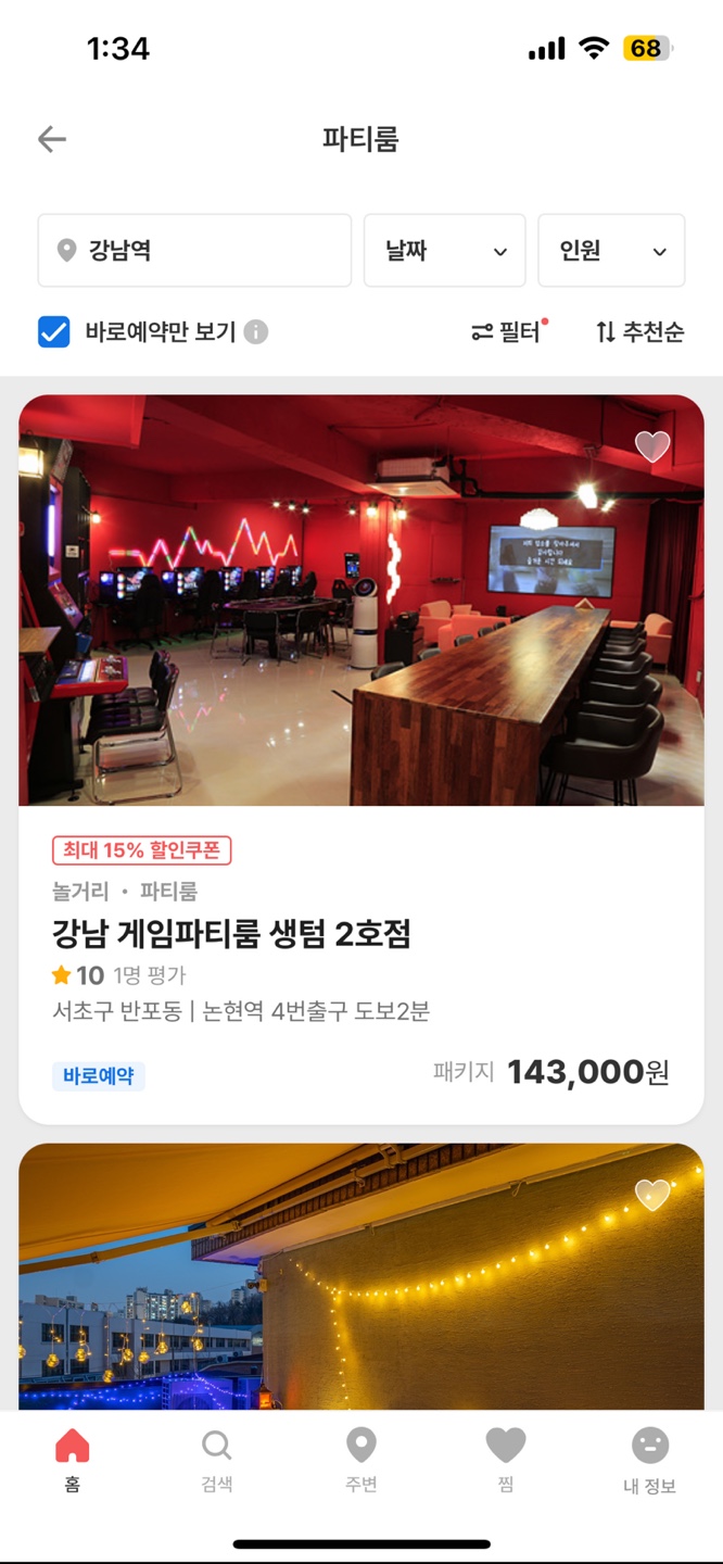 바로예약만 보기 체크박스에 체크가 되어 있을 때 필터의 빨간점이 활성화되는 것을 알 수 있다