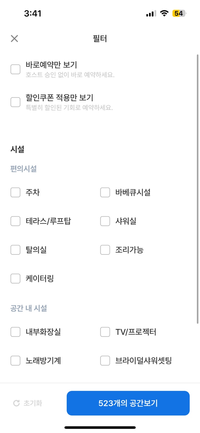 하지만 필터를 클릭해보면 생각보다 많은 조건으로 서비스를 분류 할 수 있어서 중요한 기능인데 접근성에 차등을 둔다면 User의 입장에서는 기능을 사용하지 않고 넘어가는 상황이 발생 할 수 있다