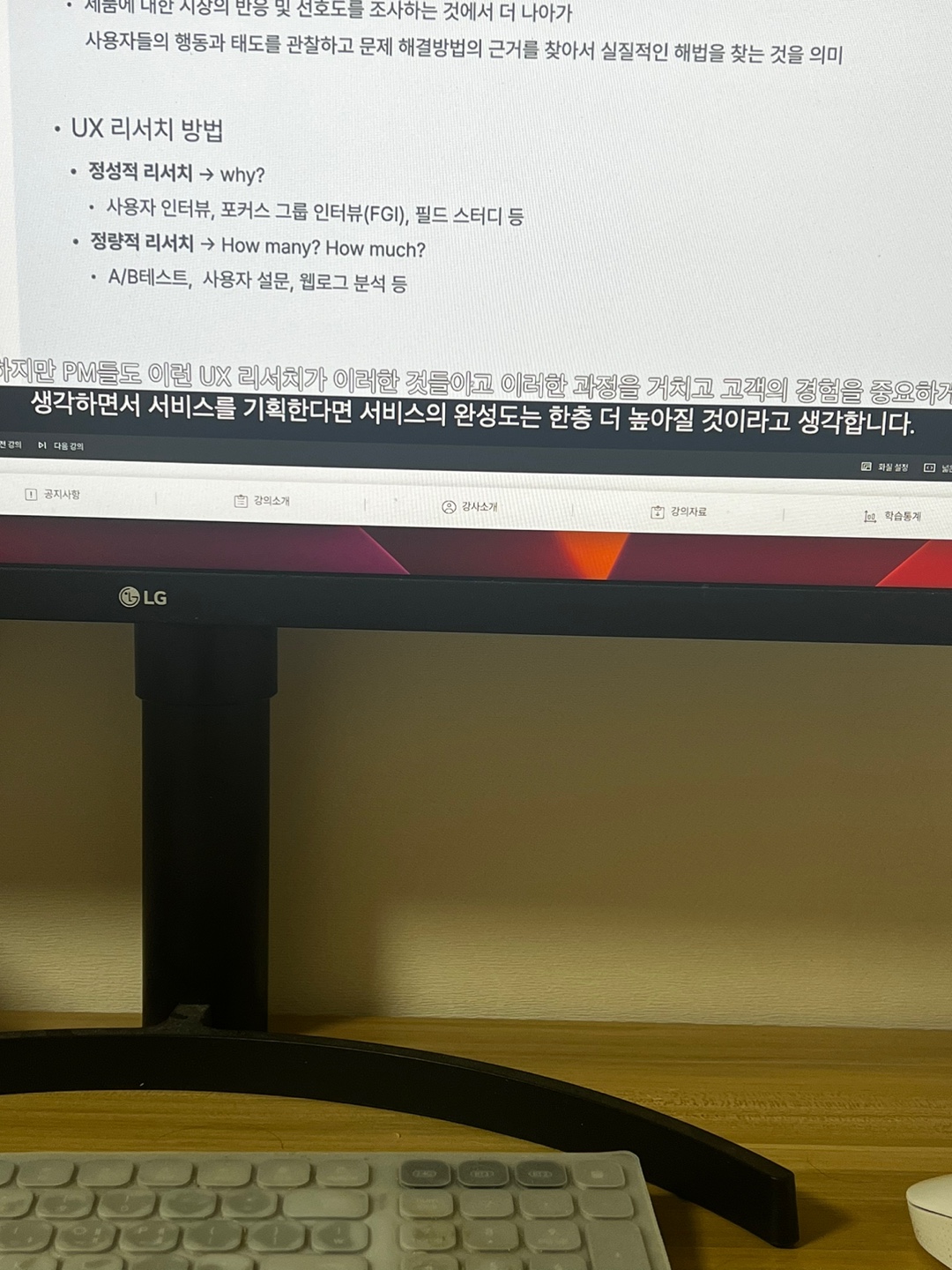 해당 강의를 들으면서 신뢰가 생긴 강사가 직접 강의를 해주는 환경이었으며