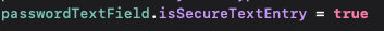 나머지 4개의 UITextField의 코드는 동일하지만 비밀번호에 해당하는 UITextField는 Text가 보이지 않게 하기 위해서