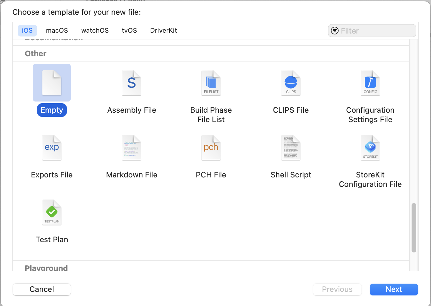 1. cmd + n을 눌러 스크롤을 내리다 보면 Empty File이 있다 생성해주자