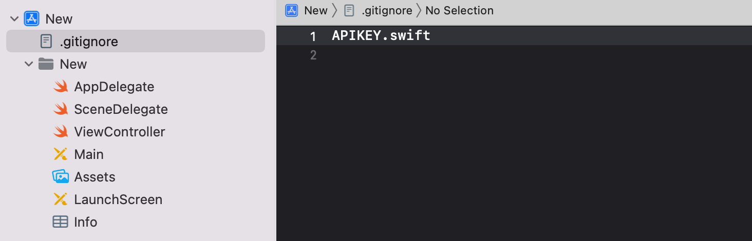 -> 왼쪽을 보면 APIKEY.swift라는 파일은 존재하지 않는다