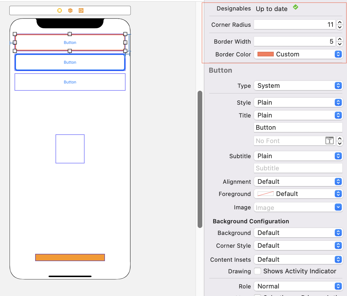 Designable은 처음 생성됐을 때 스토리보드 상에서 IBInspector 설정을 한 것이 바로 설정이 안되는 경우가 있다
