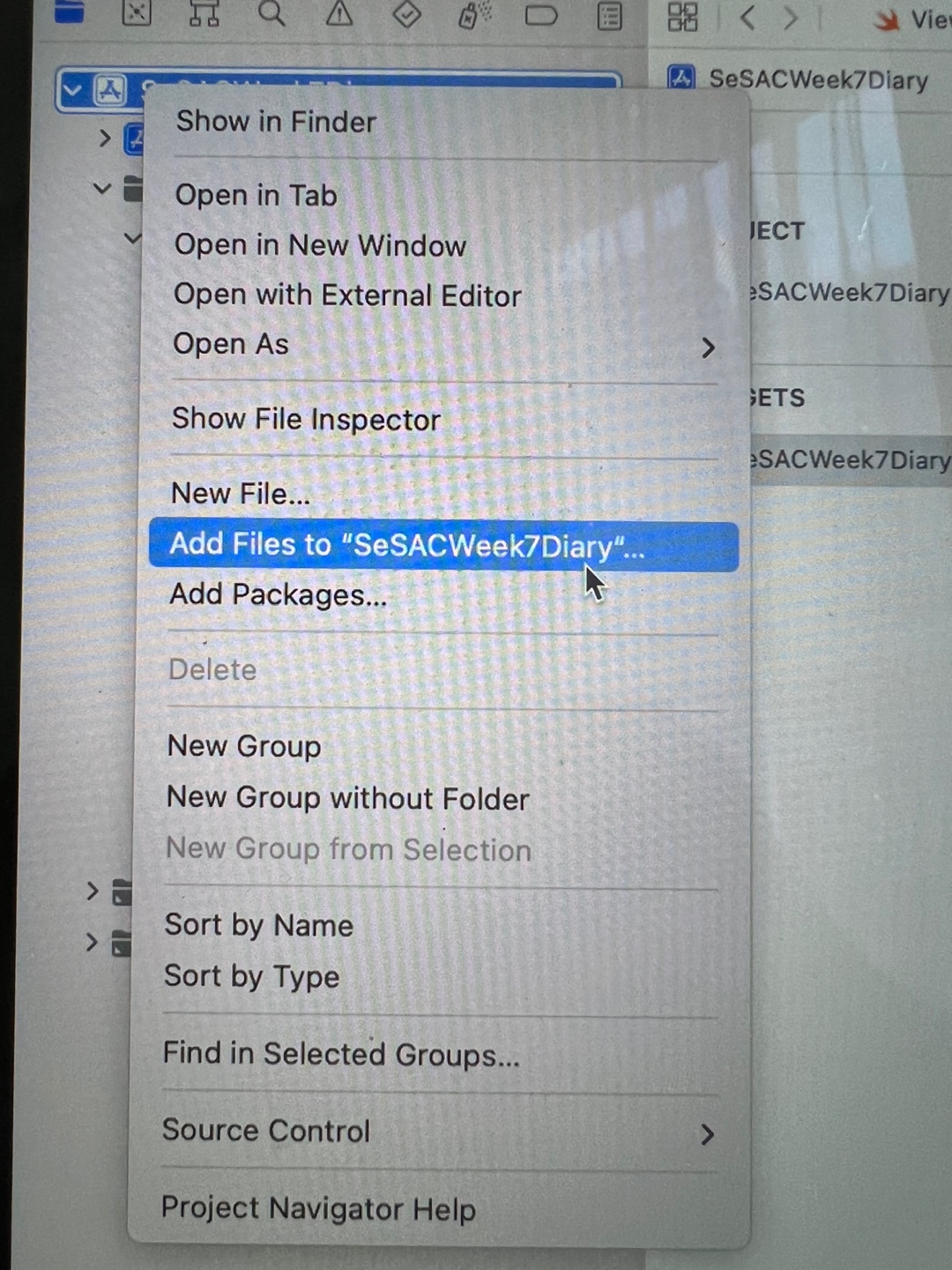 파일에서 마우스 오른쪽 버튼 클릭 후 Add File을 클릭한다