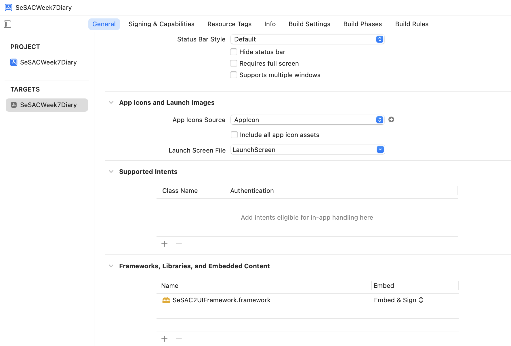 전체파일 General에 Frameworks 쪽에 + 버튼을 눌러서 가져온 Framework를 추가 해주자